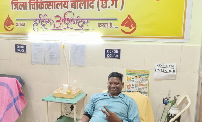 कहते हैं दानों में दान बिना डरे करो रक्तदान इस संकल्प के साथ बालोद जिला के आदिवासी ब्लाक डौंडीलोहारा के ग्राम बनगाँव के निवासी एवं सिटी कोतवाली बालोद में आरक्षक के पद पर तैनात मोहन कोकिला ने अपने बेटे के जन्मदिन पर जिला चिकित्सालय में जाकर अपना ब्लड डोनेट करते हैं यह उनका अपना संकल्प है कि बेटे के जन्मदिन पर किसी जरूरतमंद की जान बचाने वह यह सराहनीय कार्य पिछले 7 सालों से करते आ रहे हैं बालोद नगर में तैनात आरक्षक मोहन कोकिला एक मिलनसार पुलिसकर्मी हैं जिनका सभी वर्गों के लोगो के साथ मधुर संबंध है वहीं अपनी ड्यूटी और कर्तव्य में भी उनकी अच्छी पकड़ है अवैध धंधा करने वाले शातिर लोग आरक्षक मोहन कोकिला के नाम से या तो भाग जाते हैं या उनकी गिरफ्त में होते हैं बड़े बड़े केश में आरोपियों को पकड़ने में उनकी भूमिका प्रशंसनीय रही है वहीं रक्तदान करने में भी वह कभी पीछे नही रहते अस्पतालों में भर्ती मरीजों को रक्त की आवश्यकता होने और उन्हें सूचना मिलने पर वह रक्तदान हेतु पहुंच जाते हैं उनके इस कार्य पर बालोद नगर पालिका उपाध्यक्ष कमलेश सोनी आर्ट आफ लिविंग के योग प्रशिक्षक रविप्रकाश पांडेय पूर्व एल्डरमेन विनोद जैन गौ रक्षक अजय यादव समाजसेवी दीपक साहू प्रवीण जैन महेश पाठक सौरभ जैन अधिवक्ता हरीश दुबे पार्षद गिरिजेश गुप्ता प्रीतम यादव गोकुल ठाकुर सहित अनेक लोगो ने उन्हें बधाई दी है