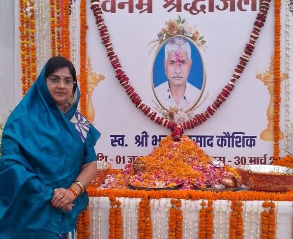 बिलासपुर में श्रद्धांजलि कार्यक्रम में शामिल हुईं नपा अध्यक्ष प्रतिभा चौधरी, दिवंगत श्री भुलउ प्रसाद कौशिक को दी श्रद्धांजलि